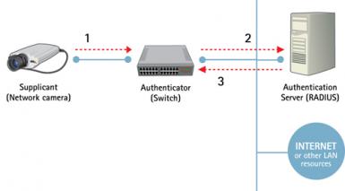 In a network video system, IEEE 802.1X can work as follows: