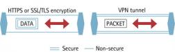 The difference between HTTPS (SSL/TLS) and VPN is that in HTTPS only the actual data of a packet is encrypted. With VPN, the entire packet can be encrypted and encapsulated to create a secure “tunnel”. Both technologies can be used in parallel, but it is not recommended since each technology will add overhead and decrease the performance of the system.